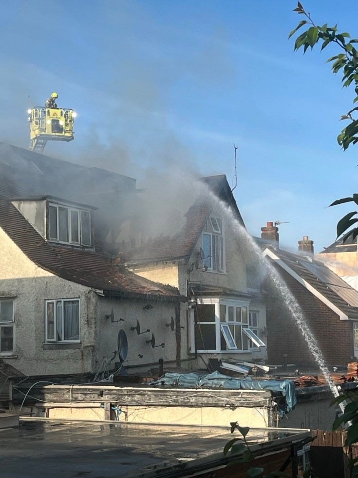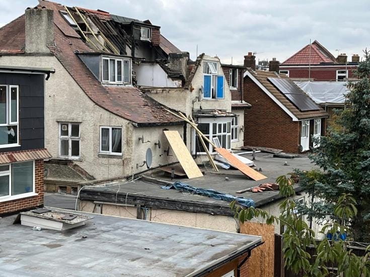 In May 2025, “Ten fire engines and around 70 firefighters tackled a fire at a house on Woodbourne Avenue in Streatham,” according to the London Fire Brigade. Residents are concerned that repair work to the building is being done in an unsafe way, with one local saying: “No scaffolding, hard hat workers or secured materials. What are Lambeth Council building control doing about it? Not much apparently. It’s a hazard if it gets windy.”